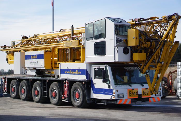 Extremt stark mobil tornkran med hög räckvidd och kapacitet. Kan själv lossa och installera sina motvikter och larvband utan behov av extra kran.